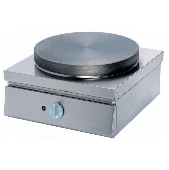 Профессиональная одноконфорочная блинница предназначена для быстрого выпекания блинчиков традиционной круглой формы в кафе формата фаст-фуд, ресторанах и столовых. Технология приготовления блинчиков очень проста — на предварительно разогретую жарочную поверхность при помощи половника наливается порция теста, которая затем распределяется специальной лопаткой по всей жарочной поверхности. Блинчики не подгорают и сохраняют свои вкусовые качества.