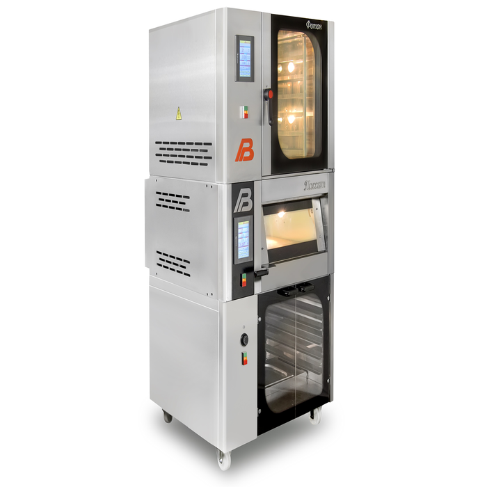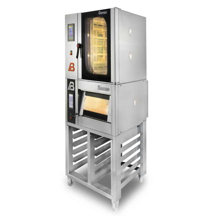 мощным парогенератором для увлажнения среды в пекарной камере во время выпечки;