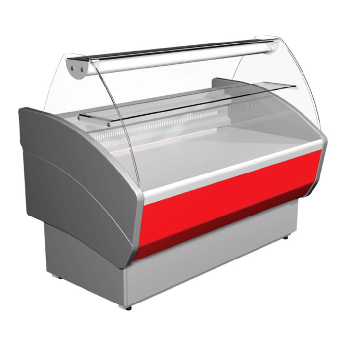 Маленькая среднетемпературная витрина подходит для размещения в ней колбасных, молочных продуктов, гастрономии. Можете выбрать ее, если вам нужна витрина для салата.