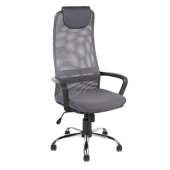 Кресло с высокой спинкой, подголовником и хромированными подлокотниками с накладками из экокожи подойдет для взрослого/подростка/школьника. Обивка кресла руководителя выполнена ткани-сетки, устойчивой к истиранию, а спинка обтянута дышащей сеткой (доступно в сером, черном, синем и красном цветах). Офисное кресло оснащено механизмом качания Top Gun и поясничным упором. Пятилучевая крестовина на колесах выполнена из хромированного металла и выдерживает высокую нагрузку до 120 кг. Кресло для руководителя имеет надежный газлифт позволяет отрегулировать кресло по высоте.