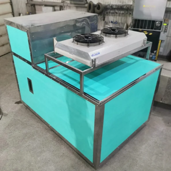 Генератор ледяной воды состоит из: 1. Несущая рама; 2. Внутренняя емкость из нержавеющей стали AiSi304, толщиной 3 мм. 3. Утепление - сэндвич панели; 4. Трубчатый испаритель (AiSi304); 5. Компрессорно-конденсаторный агрегат; 6. Блок автоматики и электрики; 7. Насос для циркуляции ледяной воды; 8. Присоединительные патрубки для циркуляции и перелива воды. Компрессор DAMING RFC4G-15.2 х 2шт. Утепление, мм - 100