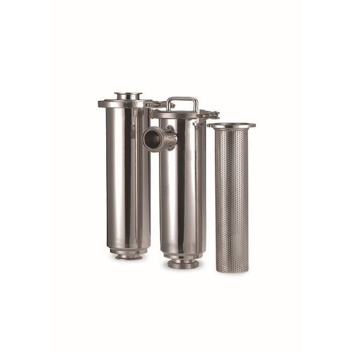 Основу фильтра составляют корпус с входным и выходным отверстием для продукта и закреплённый в нём фильтрующий элемент, который удерживает частицы размером равным или более крупным, чем размер отверстий перфорированного листа.