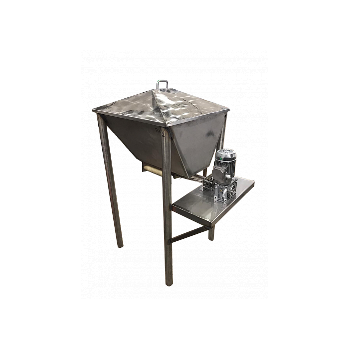 Рубашка нагрева приёмной горловины оснащена нагревательным злементом, датчиком уровня воды, датчиком температуры, переливной горловиной, дренажным вентелем. Валы изготовлены из фторопласта.