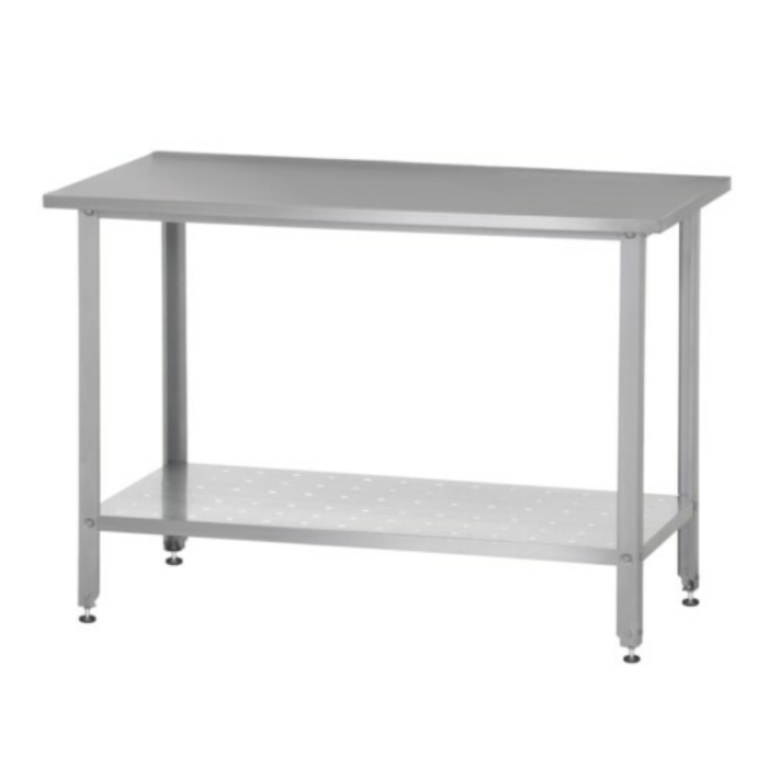 Столешница - нержавеющая сталь AISI430, толщиной 0,5 мм, подложка ДСП 16 мм. Каркас разборный, из оцинкованного гнутого углового профиля толщиной 1,5