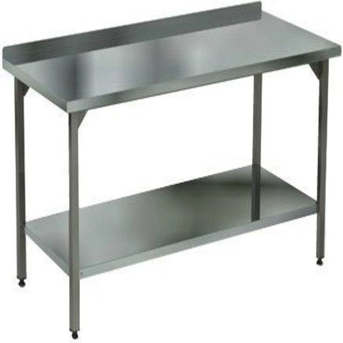 Производственный (нейтральный) стол 1400*700*850 полностью выполнен из пищевой нержавеющей стали AISI 430 с бортом и полкой, прикрепленной к ножкам