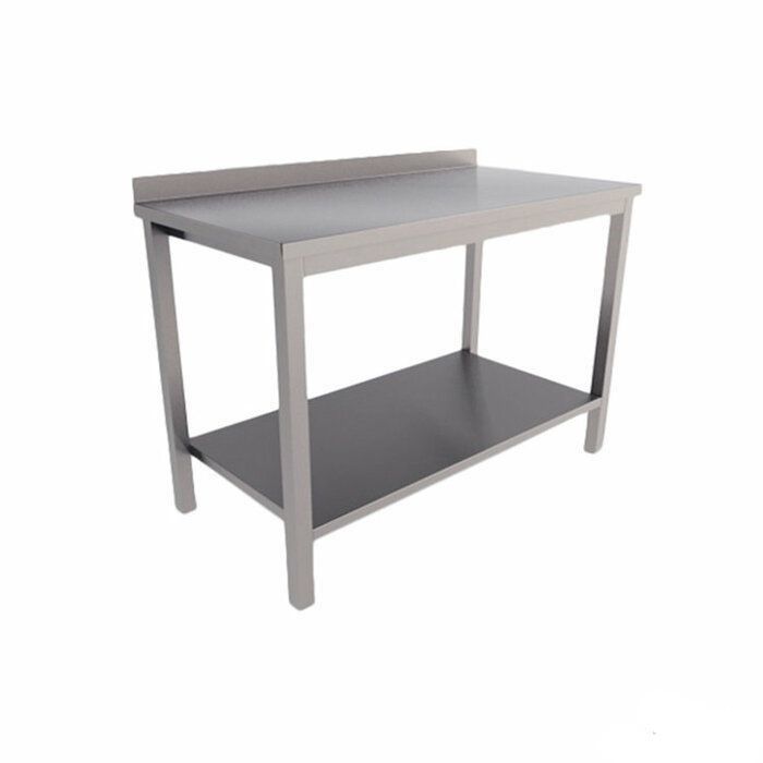 Пристенный стол Cryspi СРПН Э1 СП 600х600х870 предназначен для обработки продуктов питания, раскатки теста и хранения кухонной техники на предприятиях общественного питания и пищевой промышленности. В комплект поставки входят сплошная полка из нержавеющей стали AISI 430 толщиной 0,8 мм, крепеж и инструкция по сборке.