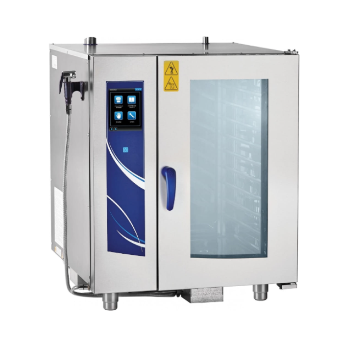 Сенсорная панель управления с TFT-экраном 120 предустановленных программ (до 4 этапов в каждой) Возможность записи до 360 собственных программ, защищённых индивидуальным паролем Регулировка уровня влажности от 0 до 100% Режим "Дельта Т" для деликатного приготовления блюд с автоматическим поддержанием разницы между температурой внутри продукта и температурой в камере Встроенный таймер (время установки от 1 минуты до 9 часов 59 минут) Функция отложенного старта 6 режимов автоматической мойки с возможностью использования как жидких, так и твёрдых (таблетированных) моющих средств (в комплект поставки входит 1 моющая таблетка с ополаскивающим эффектом для пробной мойки) Полуавтоматическая мойка с применением режима "Пар" Многоточечный температурный щуп для измерения температуры внутри продуктов 5 скоростей вентилятора – возможность выбрать подходящую скорость для приготовления любых блюд, в том числе деликатных; Совместимое оборудование и аксессуары (приобретаются отдельно): Гастроёмкости GN 1/1, GN 1/2 или GN 1/3