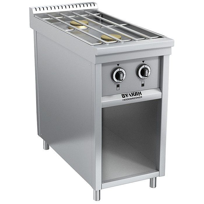Компактная газовая плита с 2-мя мощными горелками по 6 кВт и съёмной решеткой из нержавеющей стали, позволяющей свободно перемещать посуду по всей ее поверхности. На решетке одновременно размещаются 2 кастрюли объёмом 40 л. В нижней части плиты имеется ниша для хранения кухонного инвентаря. Плита оснащена системой газконтроля и может работать как на природном, так и на сжиженном газе. Корпус изготовлен из высококачественной нержавеющей стали, что значительно облегчает уход за плитой. Герметичная столешница дает возможность производить влажную уборку, исключая попадание жидкости во внутренние полости плиты.
